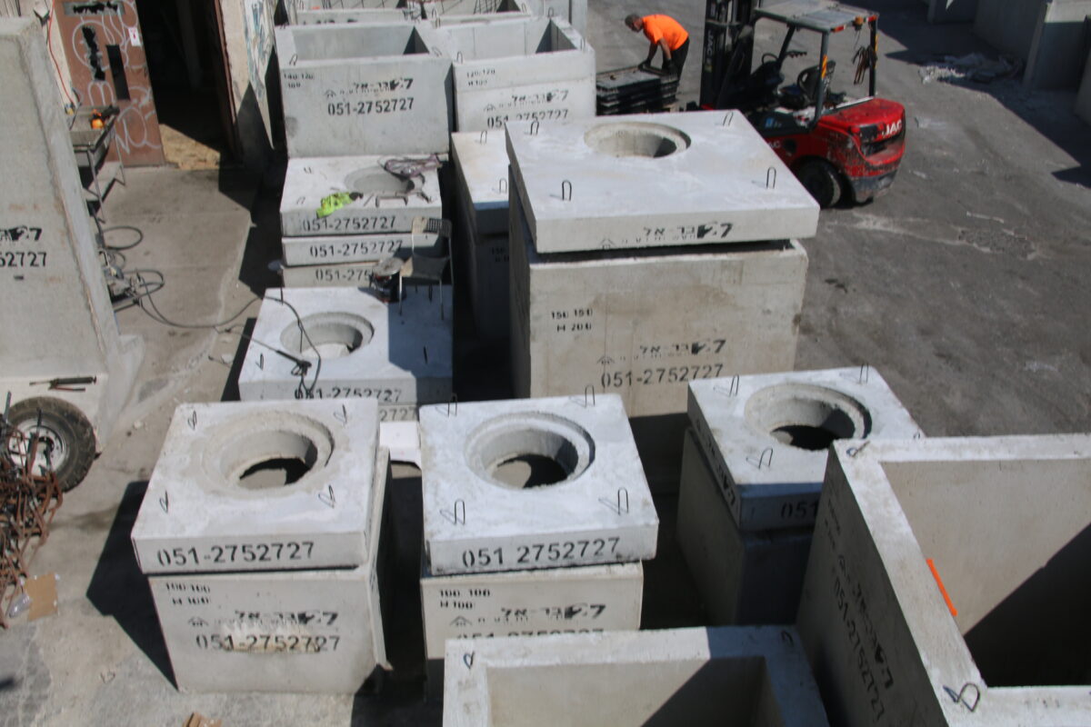 3. יציקה בתבניות מדויקות: הבטון נשפך בתהליך מבוקר עם חיזוקי פלדה פנימיים ואיטום מלא.